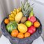 Состав: ананас, питахайя, гранат, арбуз мини, бананы бейби, гранадилла, яблоко красное, яблоко желтое, яблоко зеленое, груши 2 шт, апельсин 3 шт, мандаринки 10 шт, киви обычные 3 шт, лайм 2 шт, манго тайское, желтое